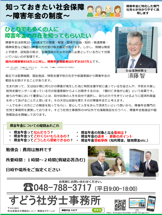 そこで、すどう社労士事務所では出張・もしくはオンラインにて障害年金に関する相談会を開催します。
