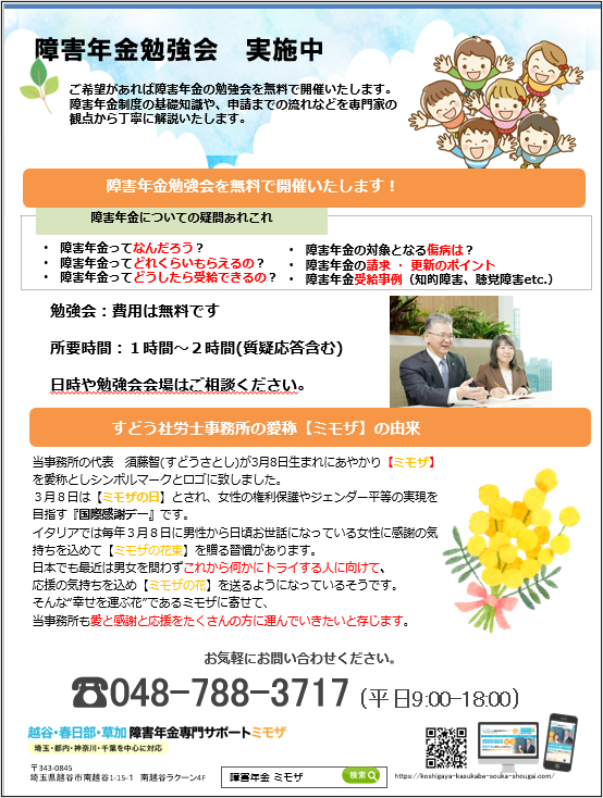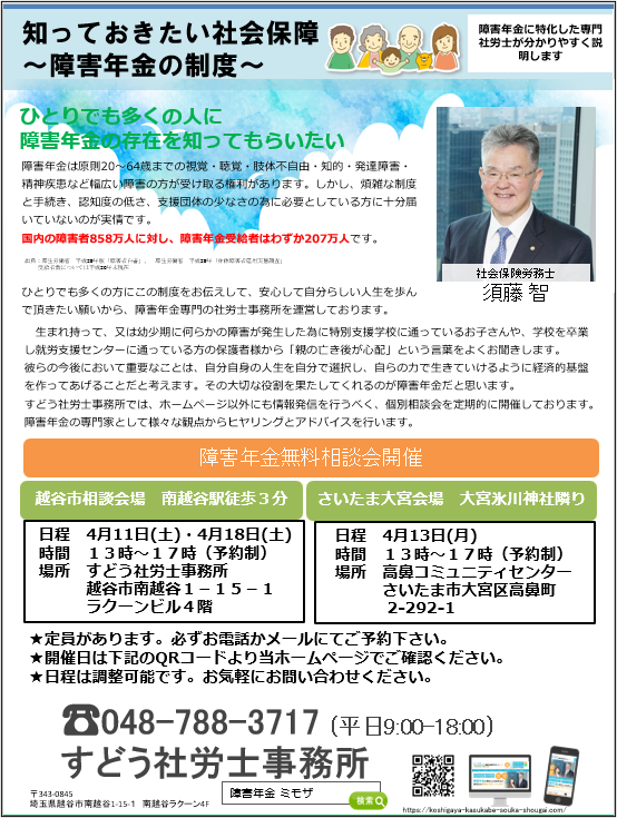 すどう社労士事務所では障害年金に関する相談会を毎月定期的に開催しております。