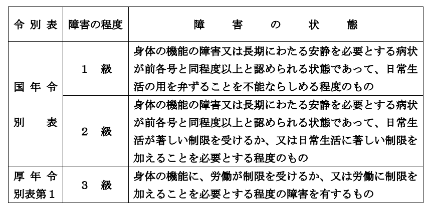 (※障害年金3級は厚生年金の加入者のみ対象です。)