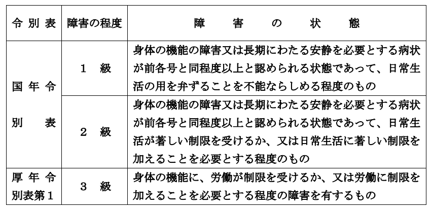 (※障害年金3級は厚生年金の加入者のみ対象です。)