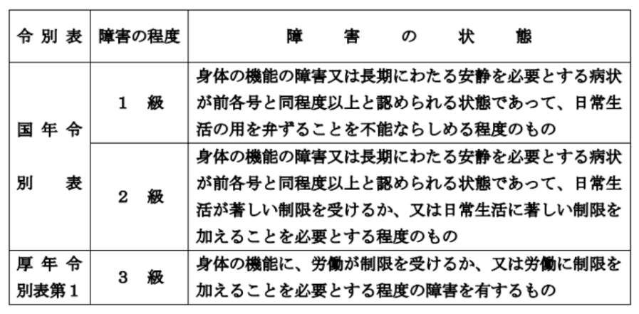 (※障害年金3級は厚生年金の加入者のみ対象です。)