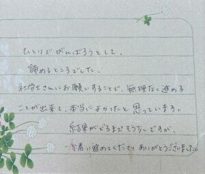面談でのご相談をした方からいただいたお手紙をご紹介させていただきます。